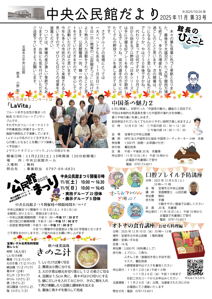 中央公民館だより11月号を発行しました