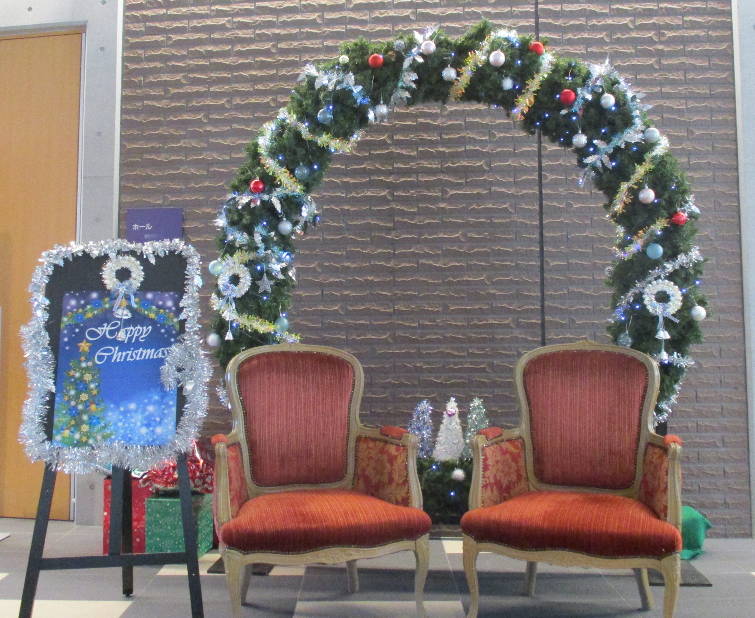 今年も中央公民館恒例の「巨大クリスマスリース」飾りが始まりました!リースは例年通りホールの前に、他にも受付や玄関もクリスマス仕様になっています。中央公民館のお越しの際はリース前で写真を撮って行ってくださいね🎄