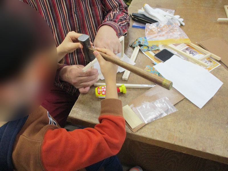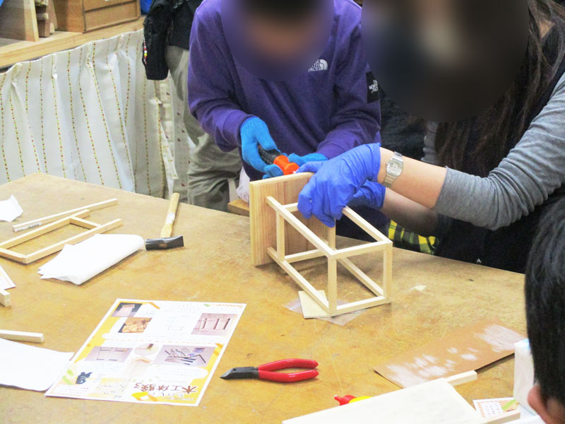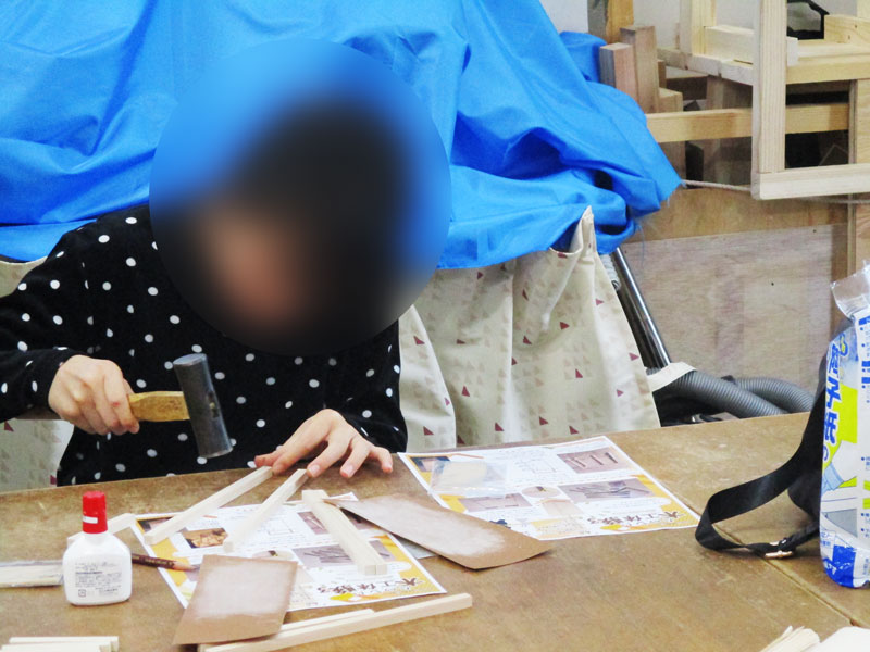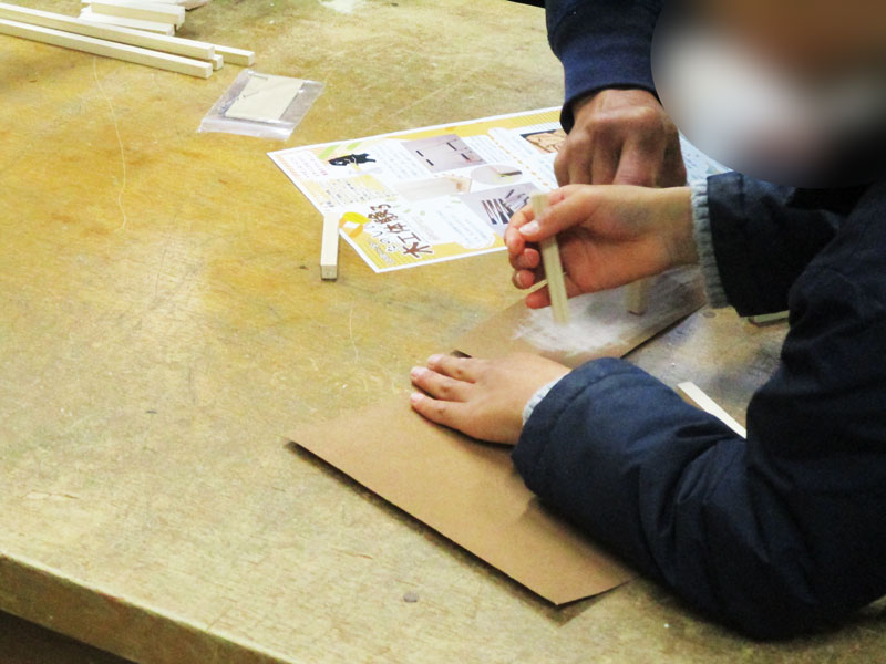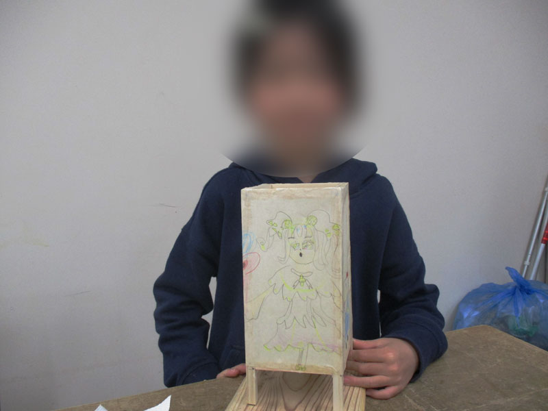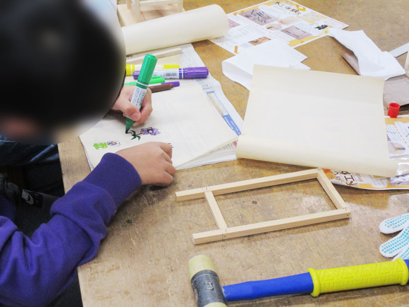 サイズを測って、のこぎりで木を切って、金づちで釘を打って、和紙に絵を描いて、、、、とやる事がいっぱいで2時間の予定をオーバーしてしまいましたが参加者の皆さんは頑張って仕上げていました!