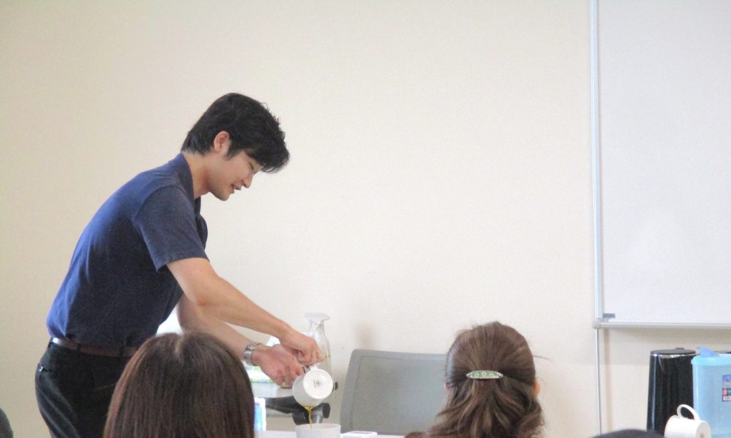 講師は神戸紅茶株式会社の濱田さんにお願いし、紅茶の産地や種類などの基礎知識を教えてもらった後、「3大紅茶」といわれるダージリン、ウヴァ、キーマンの3種類をテイスティング。
