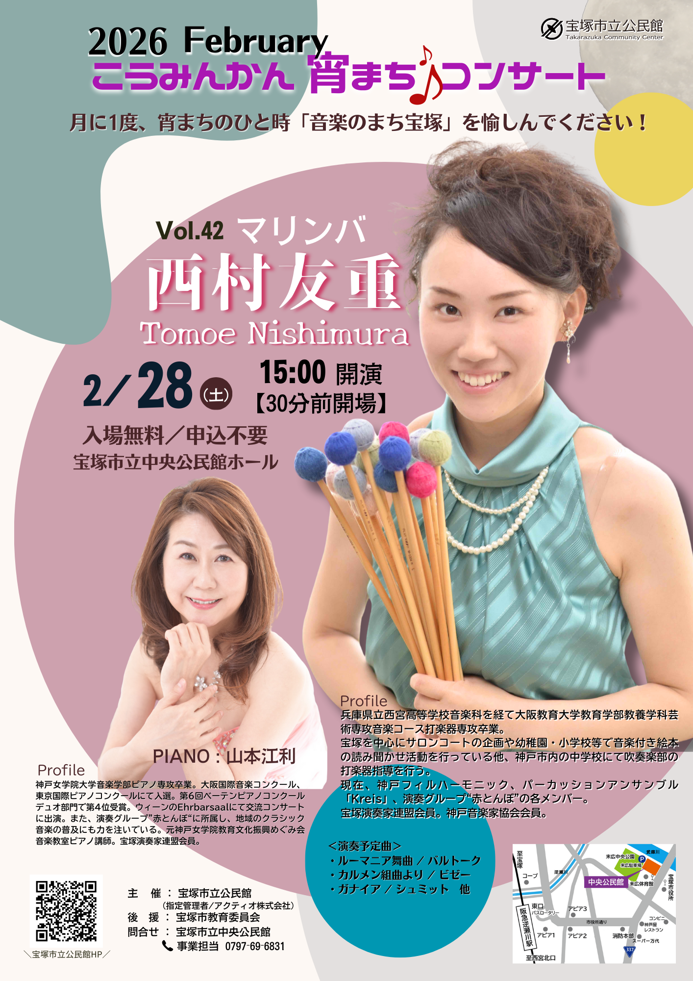 【2月28日15:00開演】宵まちコンサートV0l .42 ♪ マリンバ 西村友重