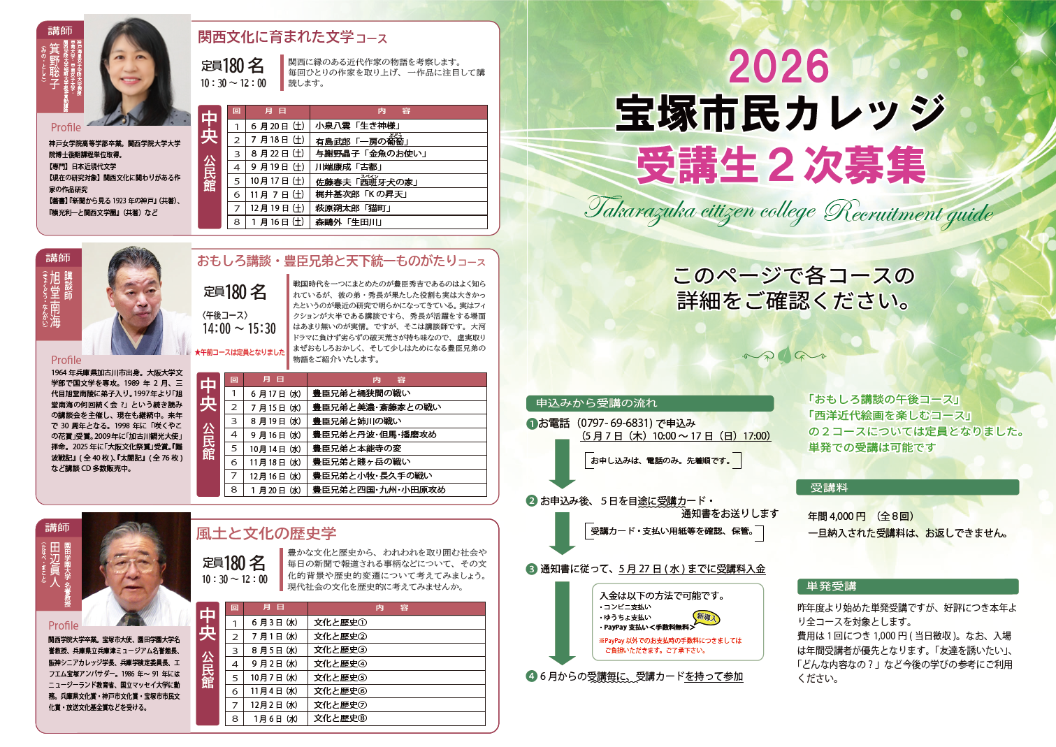 2026宝塚市民カレッジ2次募集 詳細ページ