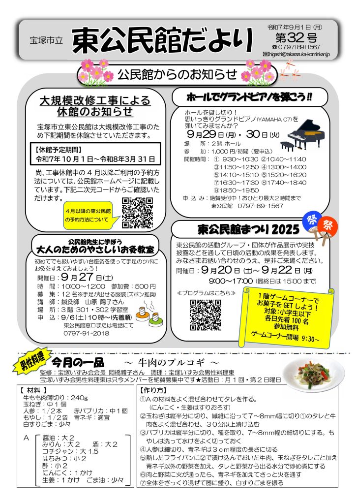 ※<東公民館だより>は、工事休館中は勝手ながら休刊させていただきますのでご了承ください。