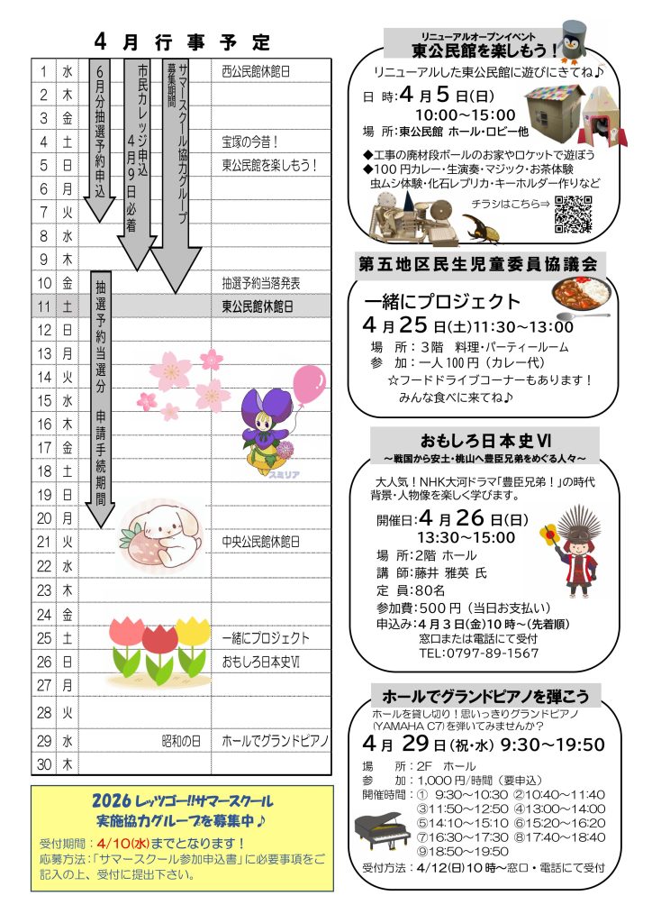 リニューアルOPEN記念といたしまして5日(日)には「東公民館を楽しもう!」を行います。