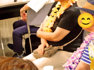 ハワイアンレイを首にかけ、南国の風に期待を膨らませる参加者のみなさま。
