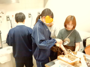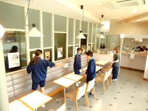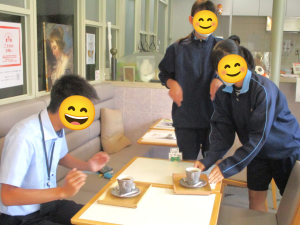 お昼前からはHUGカフェさんでお手伝い。ランチ前のお掃除を終わらせた後はHUGカフェ・八尾さんからコーヒーに関する座学のほか、就労継続支援B型事業所についてもお話しいただきました。