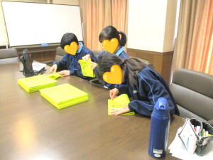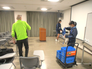 2日目はがっつり就労体験DAY! 受付スタッフ体験、「公民館を支える仕事」の設備さん編、清掃さん編、公民館まつりの準備手伝い(プログラム折り、展示用フックの仕分け)、宝塚市民カレッジ開催手伝い(会場準備、受付作業)となかなかのハードメニューだったのでは?