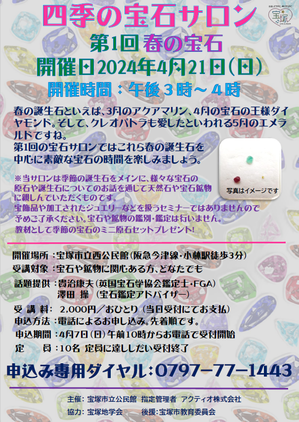 話題提供:貴治康夫(英国宝石学協会・FGA) 澤田操(宝塚地学会)