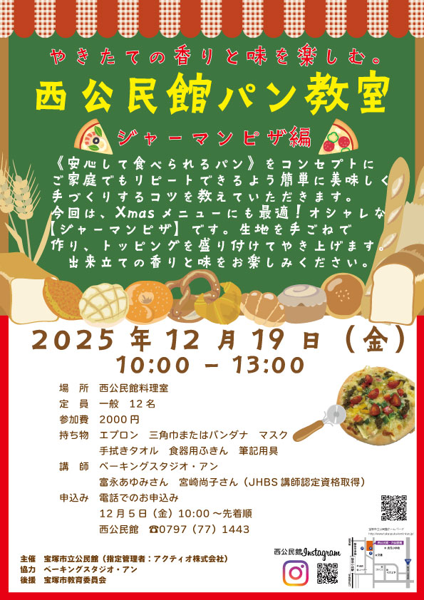 【12/5~申込開始】焼きたての香りと味を楽しむ。≪西公民館パン教室≫~ジャーマンピザ編~