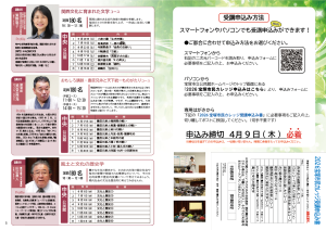 ●受講料 年間4,000円 (全8回) 一旦納入された受講料は、お返しできません。